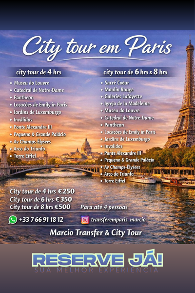 Descubra a Cidade Luz com exclusividade! Nosso City Tour Privativo leva você pelos pontos mais icônicos de Paris, no seu ritmo e com total conforto.
